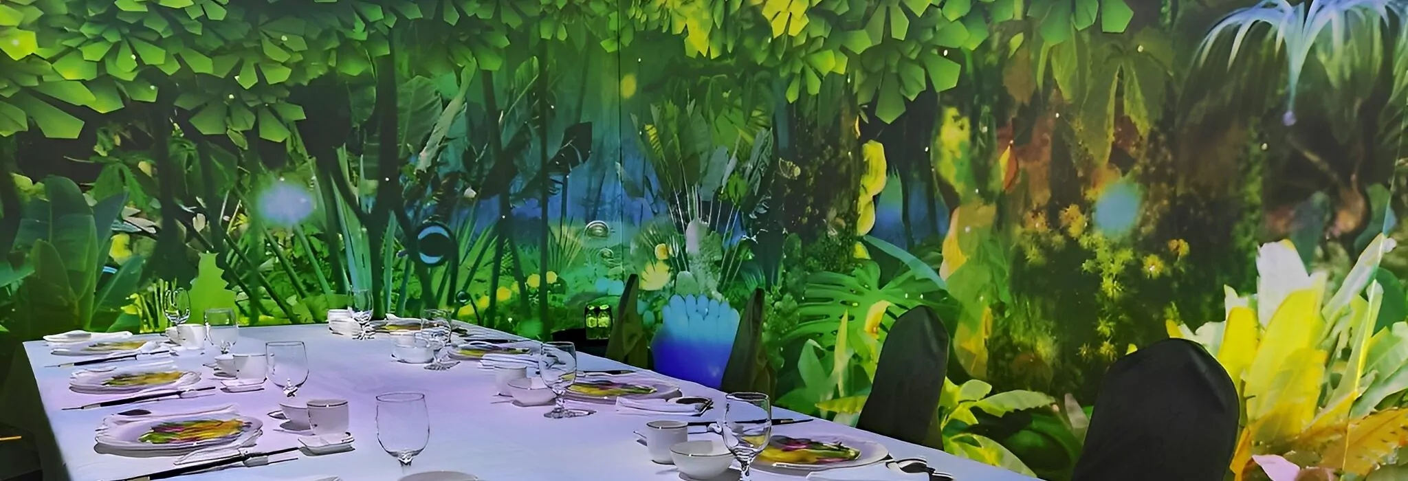 为您的公司晚宴或私人派对寻找独特的用餐体验?查看我们最新的私人会议与宴会厅;e 品通过 3D 投影提供身临其境的用餐体验。